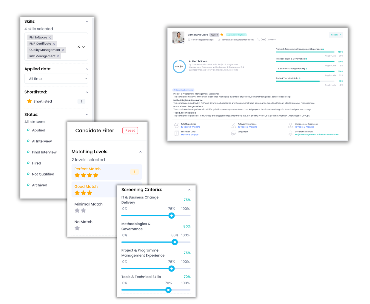 - Screening Criteria Scores (e.g., Experience, Skills, Education)