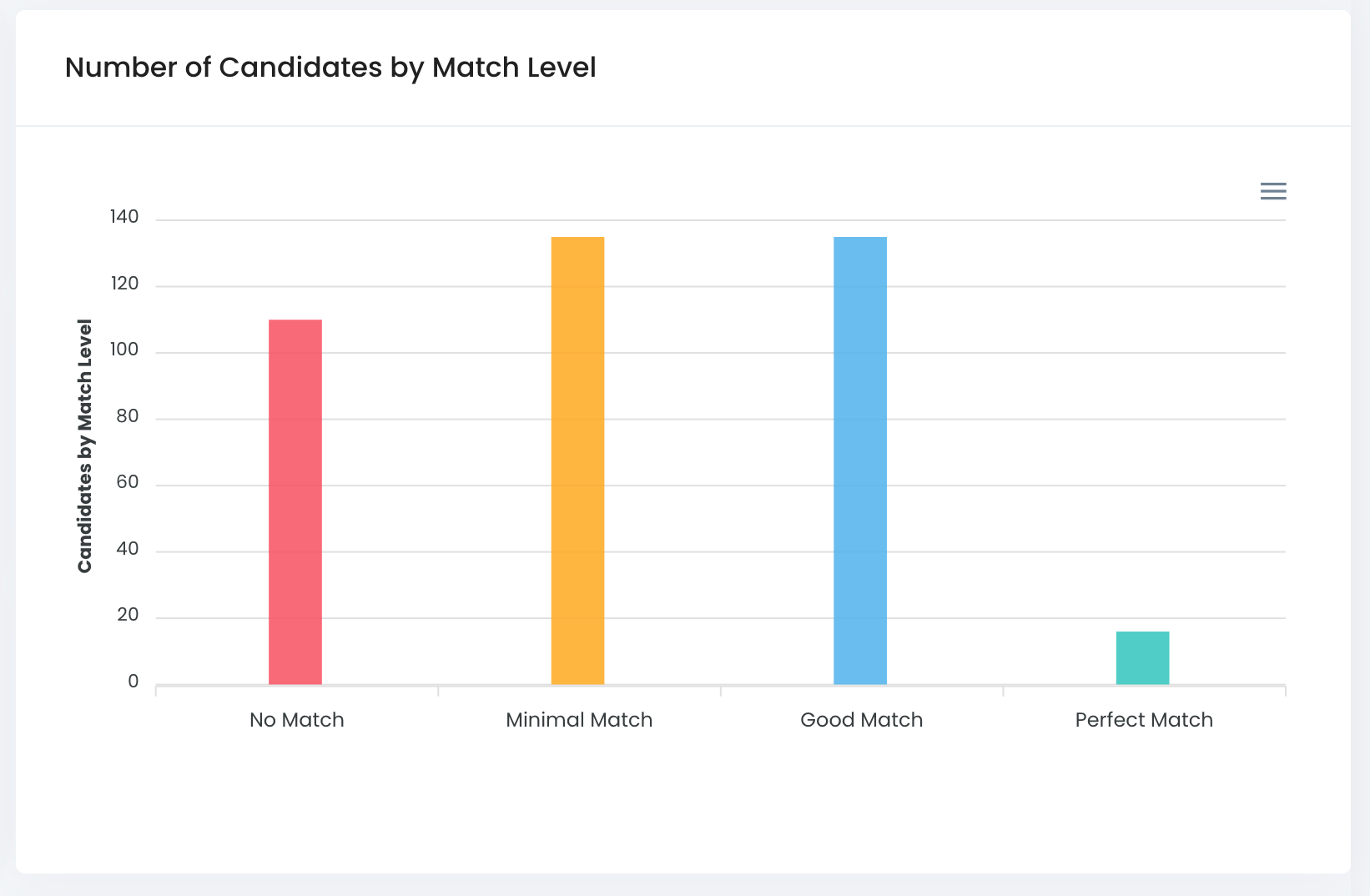 A simple, visual bar chart shows how well candidates match your criteria: Perfect, Good, Average, or Low Match. See immediately if your job ad is hitting the mark—or if screening criteria need a tweak.
